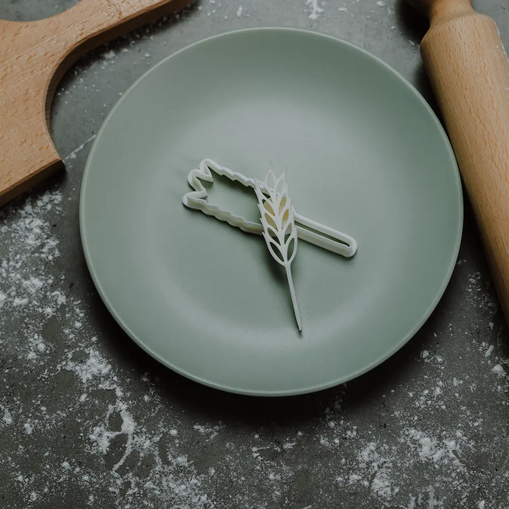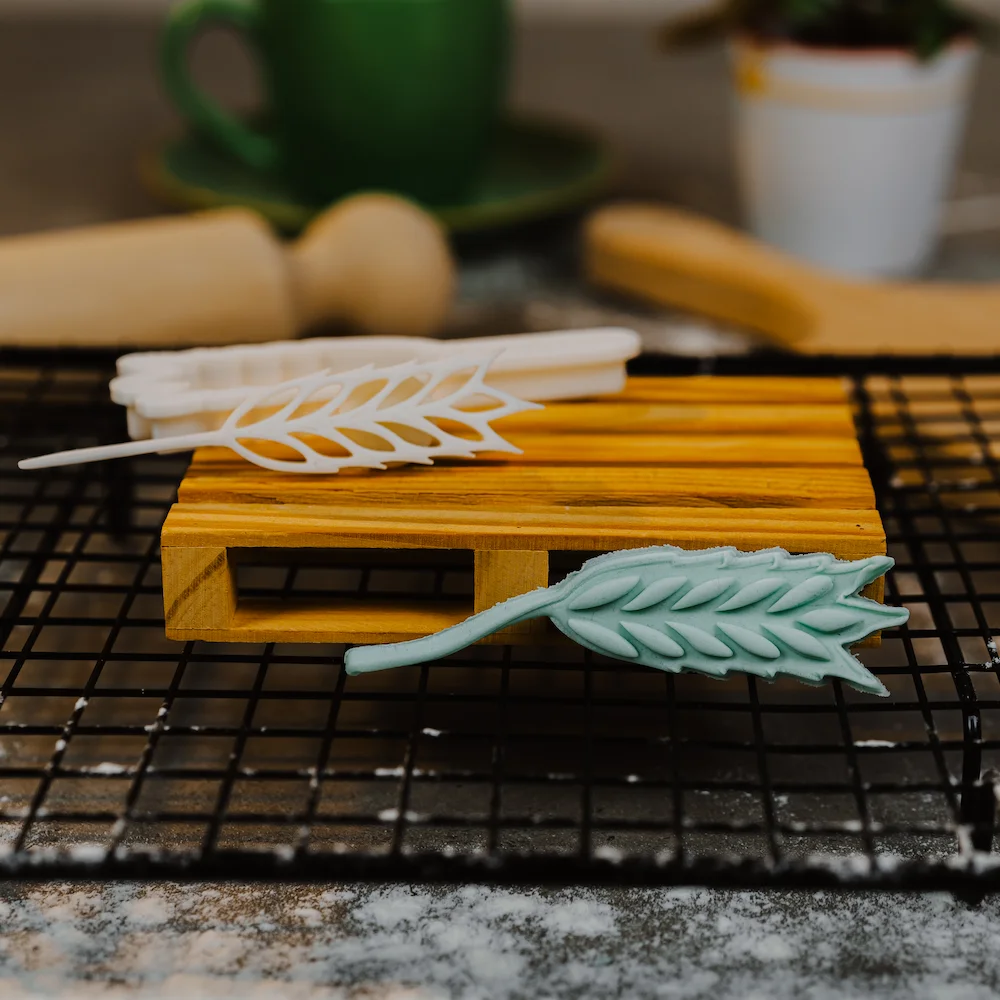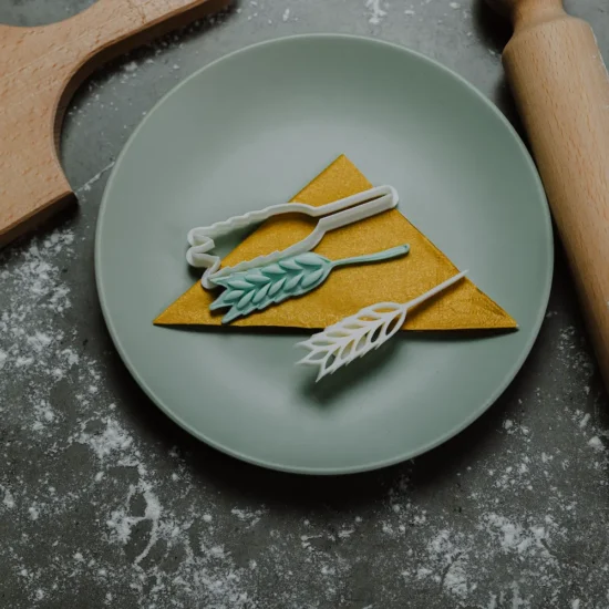 Klas žita modlica za slavski kolač. Možete kombinovati više ukrasa za formiranje snopa. Imaju dugu stabljiku pa su pogodni za kombinovanje, a po potrebi je možete i skratiti. Set sadrži sekač za sečenje i oblikovanje testa i utiskivač koji pravi šaru zrna u klasu. Utiskuju se tačno jedan u drugi za što precizniju šaru. Ivice su optimalno tanke za lakše i precizno sečenje. Utiskivač ima dršku za jednostavnije vađenje iz testa.